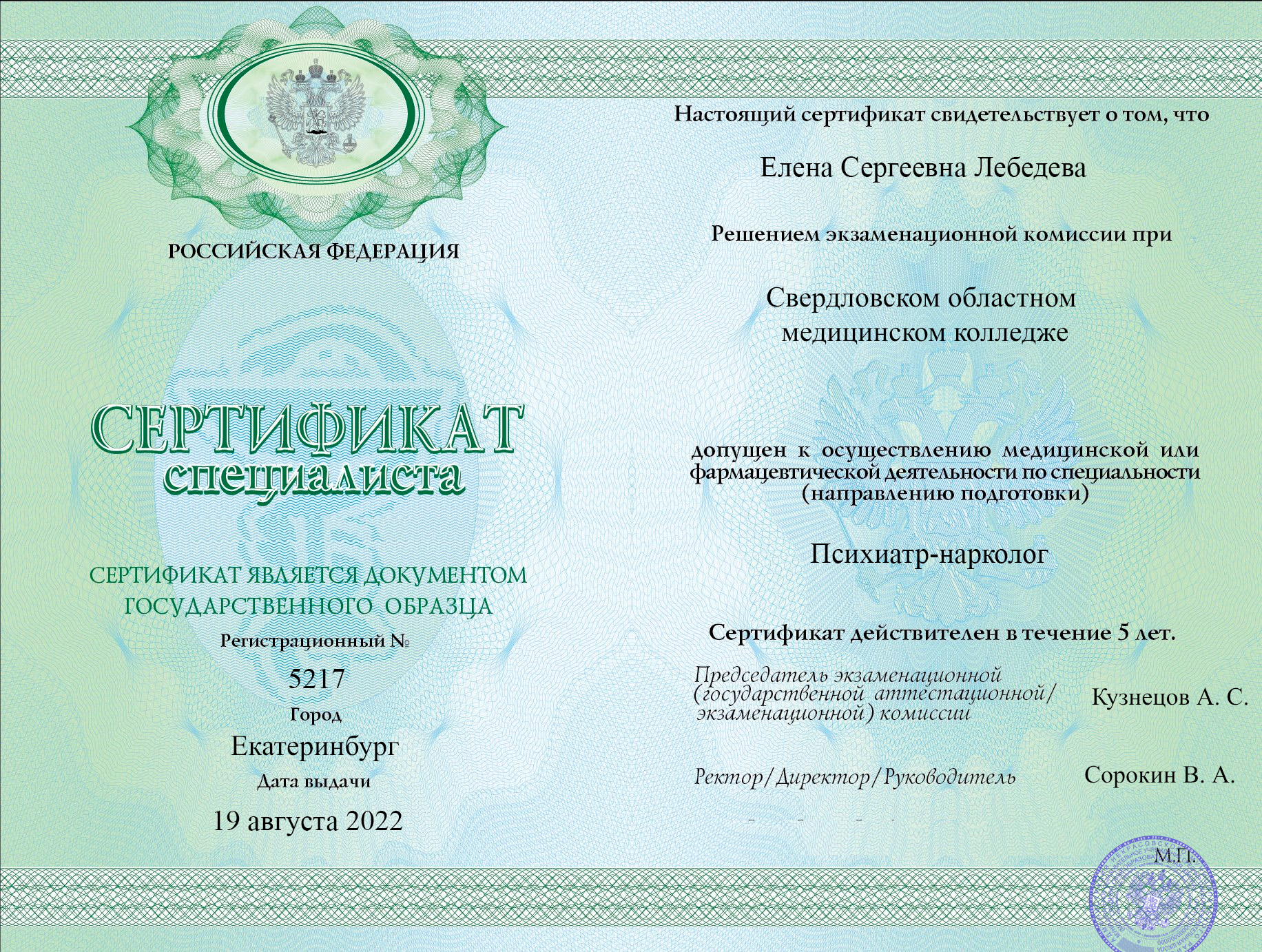 Елена Сергеевна Лебедева врач нарколог клиники доктора Стукаловой в Молодёжном